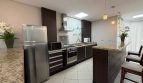 A cozinha possui armários novos, além de lavanderia independente com acesso direto ao pátio garden e despensa, oferecendo praticidade e excelente espaço de armazenamento.