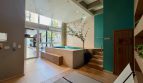 - Cozinha integrada à churrasqueira, com marcenaria planejada e eletros embutidos;