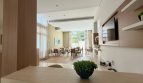 - Cozinha integrada à churrasqueira, com marcenaria planejada e eletros embutidos;